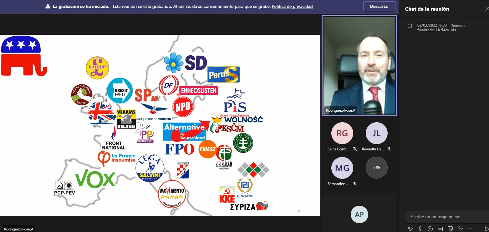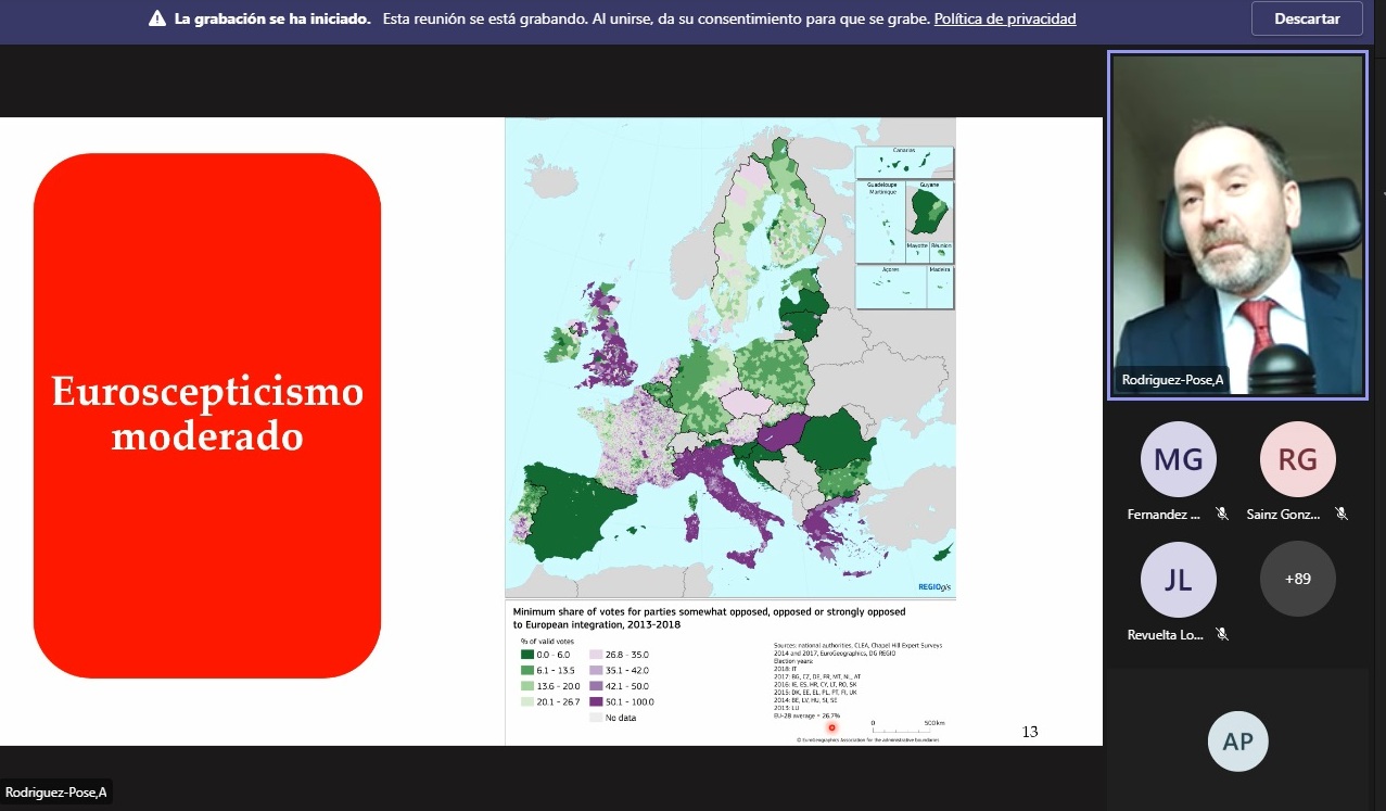 Así, tras una interesante ponencia de una hora, los asistentes tuvieron la oportunidad de formular sus preguntas, a las cuales el Profesor Rodríguez-Pose respondió con gran amabilidad.
