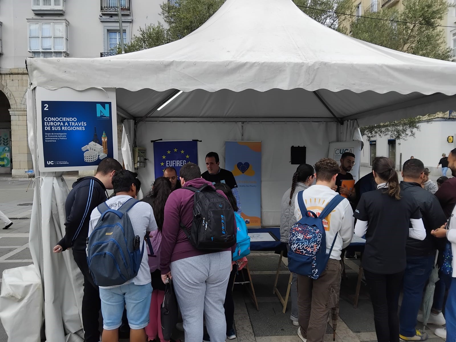 The Researchers’ Night was held in the Plaza de Pombo in Santander and attracted, despite the rain, hundreds of attendees. Members of the Jean Monnet team designed a series of maps of Europe, using color-coded zones to mark different regions. The participants had to play a game in which they were asked different questions about regions in Europe. Some of the questions addressed issues related to vulnerability to climate change and the Green Transition, which allowed participants to learn about the work on the subject that researchers are carrying out as part of the European GreenPaths project.