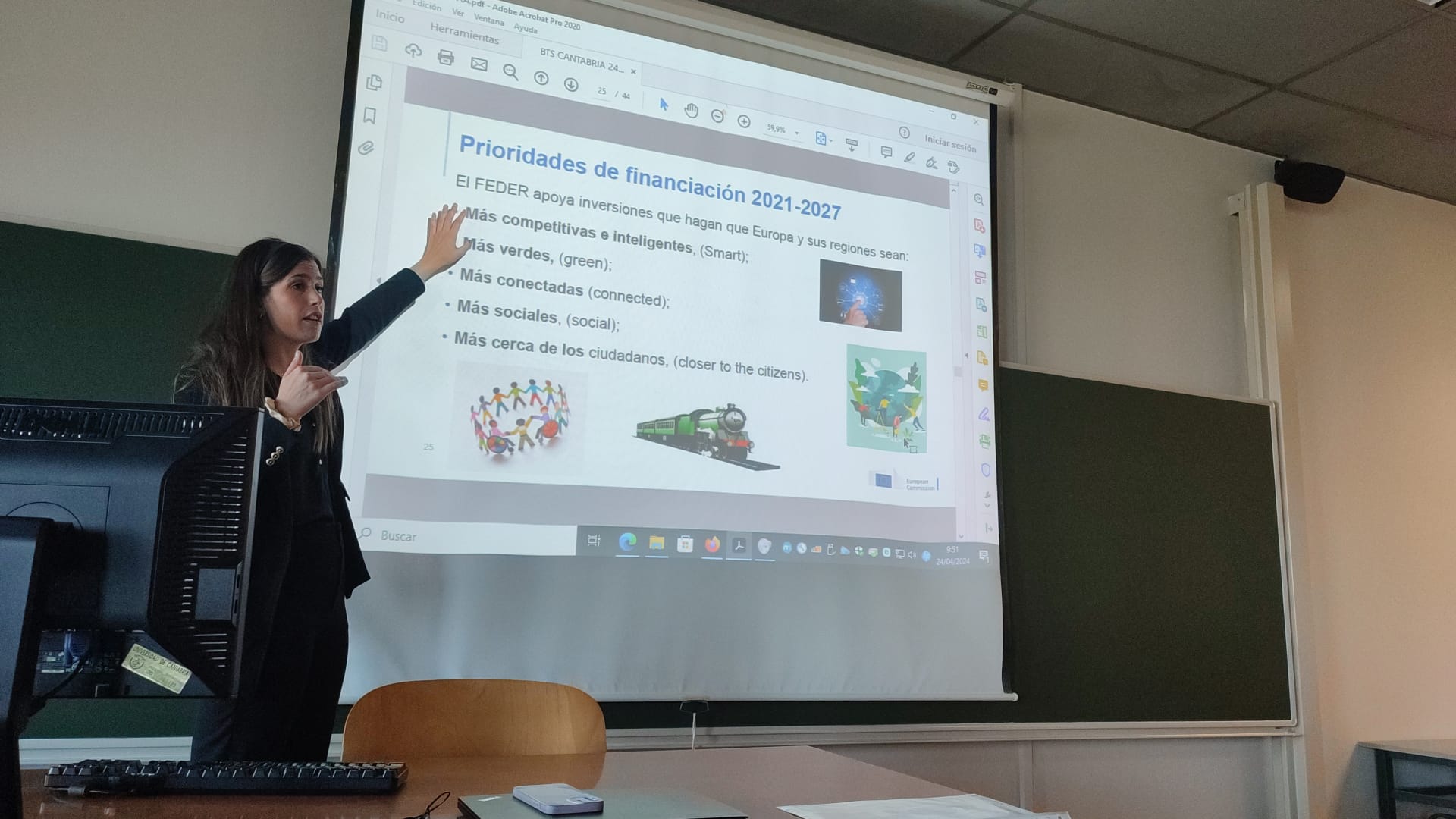 El 24 de abril de 2024, Irati Icardo (Policy Officer de la Comisión Europea y Relatora del Programa FEDER de Cantabria), explicó a los estudiantes de Política Económica Europea (Grado en Economía) la motivación, las prioridades y la articulación de la política de cohesión y de los fondos europeos orientados a potenciar el desarrollo regional.